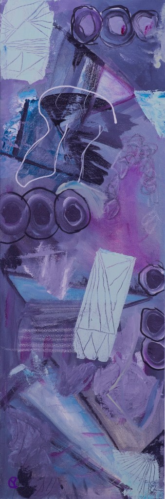 Recently I did that, following a workshop by Jenny Nelson on shapes. Starting with three of the same shape – triangles in my case – I worked in a limited palette of phthalo green, magenta, black, white & a smidge of benzimidazolone yellow medium.
