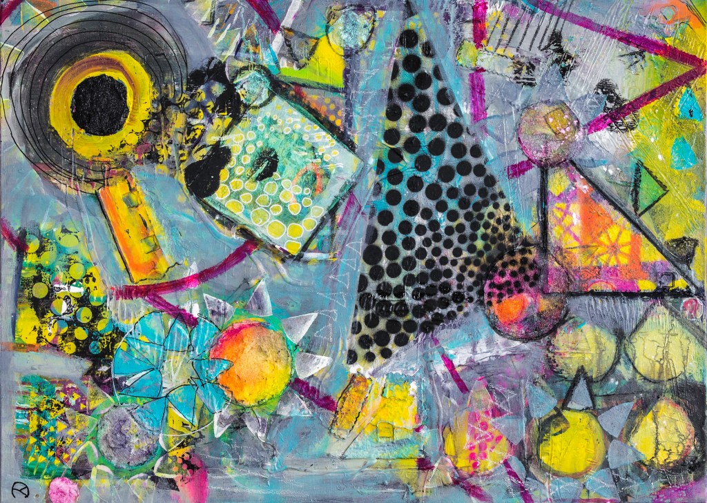 379 Dot Dot Dot I 24 x 30″380 Dot Dot Dot II. 24 x 30″381 Dot Dot III. 24 x 30″ 212 Something Everything Nothing. 40 x 40″ (diptych)342 Colour Theory. 24 x 24″ 372 All Blues:Miles Davis 16 x 20″ 374 Blasted Tree II. 12 x 12″ SOLD375 Syncopation. 16 x 20″ 378 Trading Fours. 16 x 20″ 395 Abstrakt Garden. 14 x 14″ 401 Delta. 8 x 10″ 408 Downtown. 8 x 10″ 411 Sommersault. 6 x 6″, Mixed media on cradled panel SOLD235 Frieze. 20 x 100″ (5 panels)421 Cornered II. 24 x 36″ Mixed media o/c420 Cornered 12 x 16″.399 Miel. 10 x 10″ 404 Tumble. 8 x 10″ 415 Dot Dot Dot V. 8 x 10″ 428A Primodial Oohs 1 of 3 10″ x 10″ 428B Primodial Oohs 2 of 3 10″ x 10″ 428C Primodial Oohs 3 of 3 10″ x 10″ 414 Dot Dot Dot IV. 16 x 20″431 Boundless. 24 x 36″ 432 Moderation. 24 x 18″ Mixed Media on Canvas 424 Serendipity 10 x 8″429 Relativity, Mixed media, 8 x 8″435 Land’s End, Mixed media, 10 x 8″434 Obsessed. Mixed media , 20 x 28″443 Dreamscape Green. Mixed Media on Cradled Board 12 x 12″444 Dreamscape Gold. Mixed Media on Cradled Board 12 x 12″445 Dreamscape Blue. Mixed Media on Cradled Board 12 x 12″446 Dreamscape Orange. Mixed Media on Cradled Board 12 x 12″447 Dreamscape Violet. Mixed Media on Cradled Board 12 x 12″437 Ghost Palm. Mixed Media on Cradled Board, 16 x 16″ 421 Cornered II, Mixed media on canvas, 24 x 36″. SOLD462 Puzzle, Mixed media, 30 x 24″