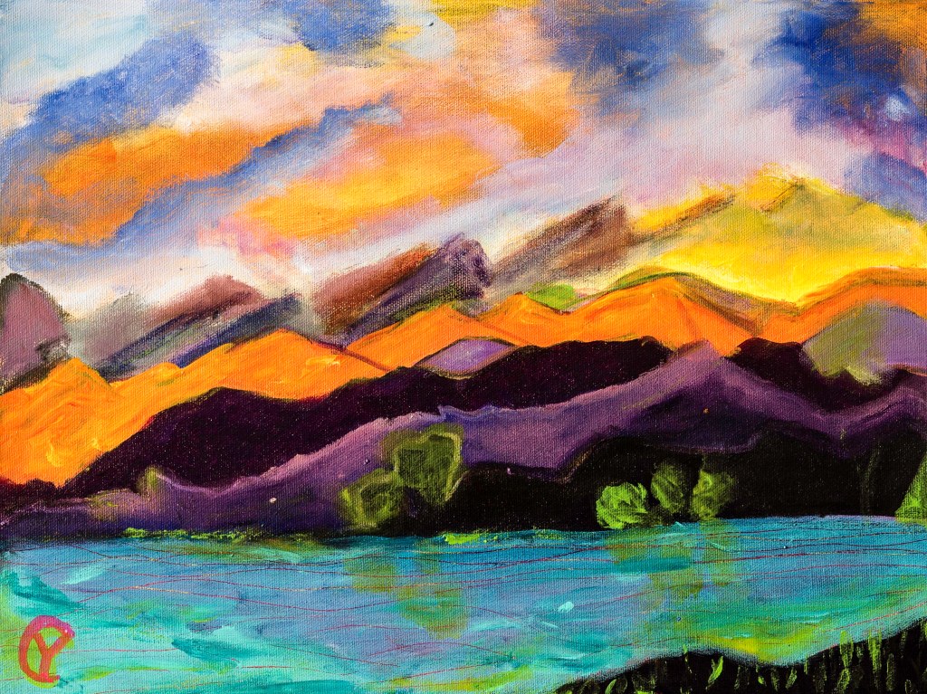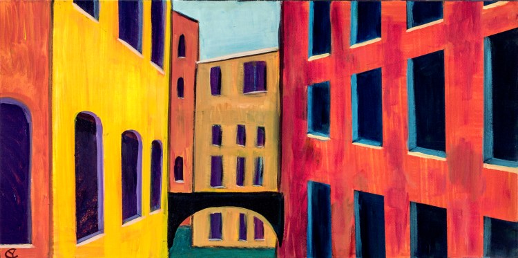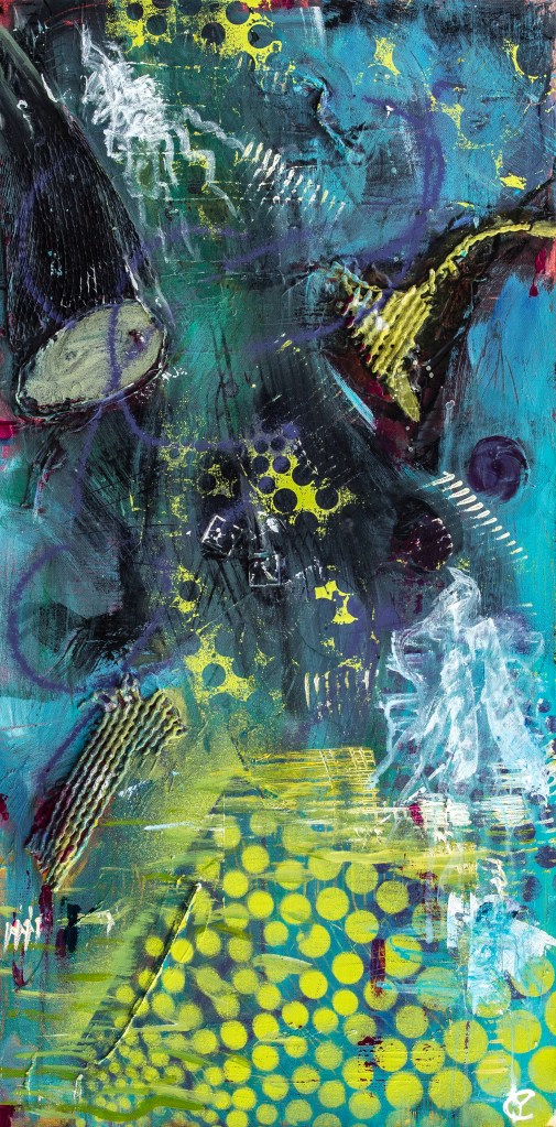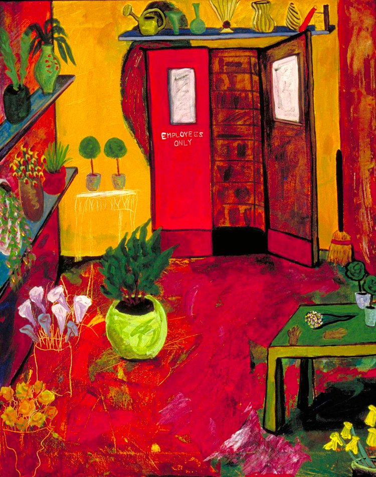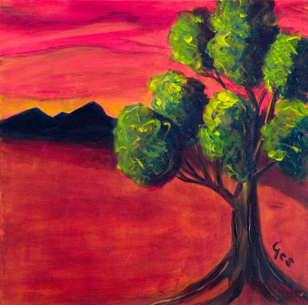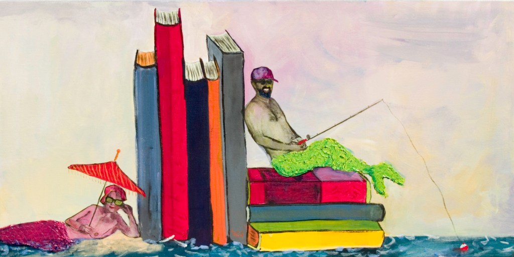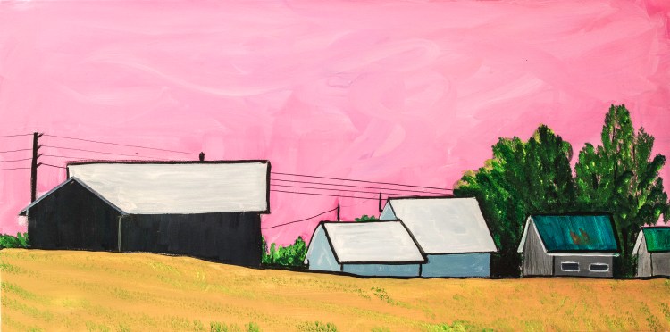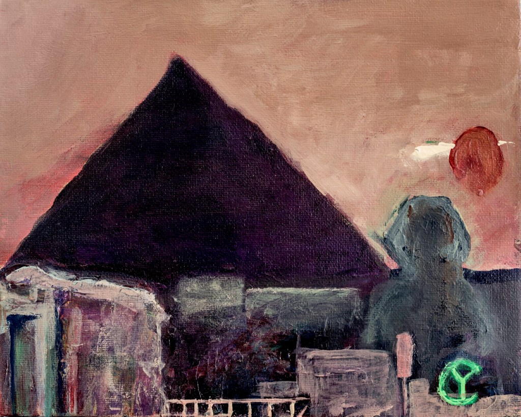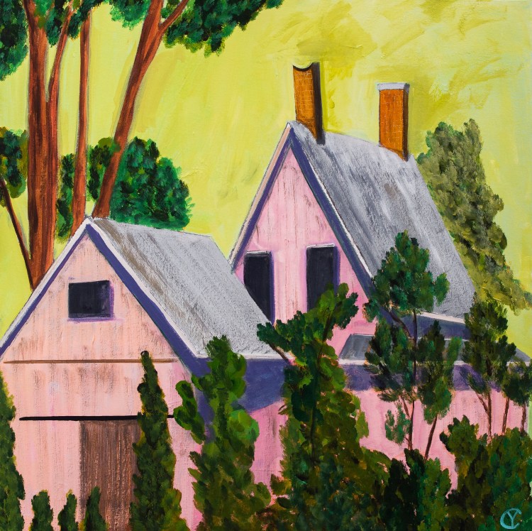 Traditionally, scapes refer to landscapes, depictions of the geographical world around the artist. Currently that view is expanded to include other views including tablescapes and mindscapes. [All works acrylic on canvas unless otherwise noted.]