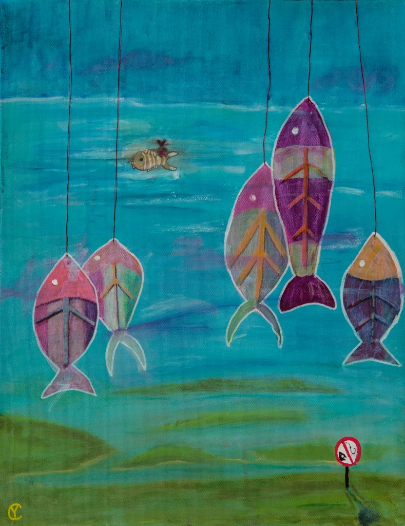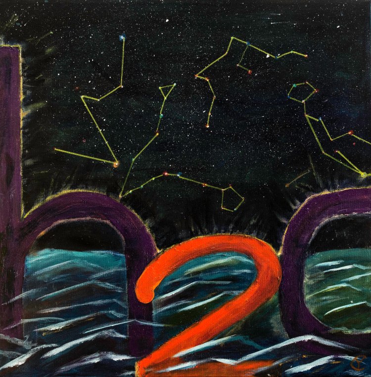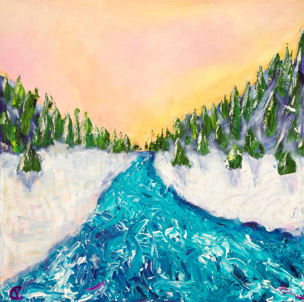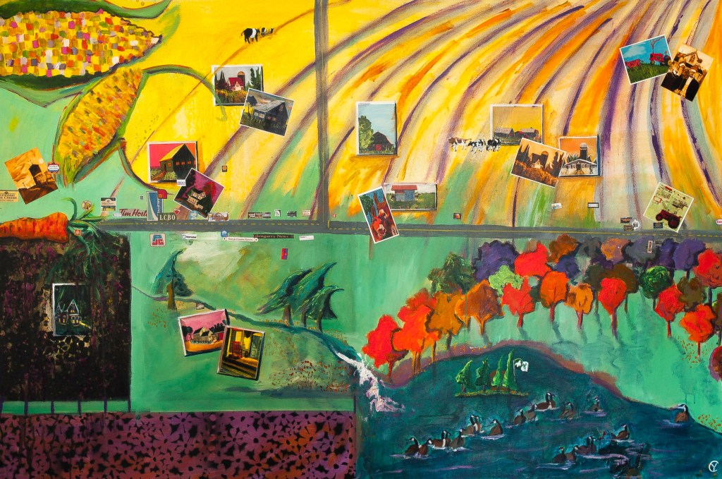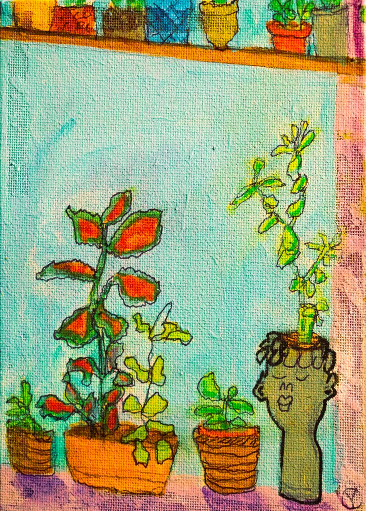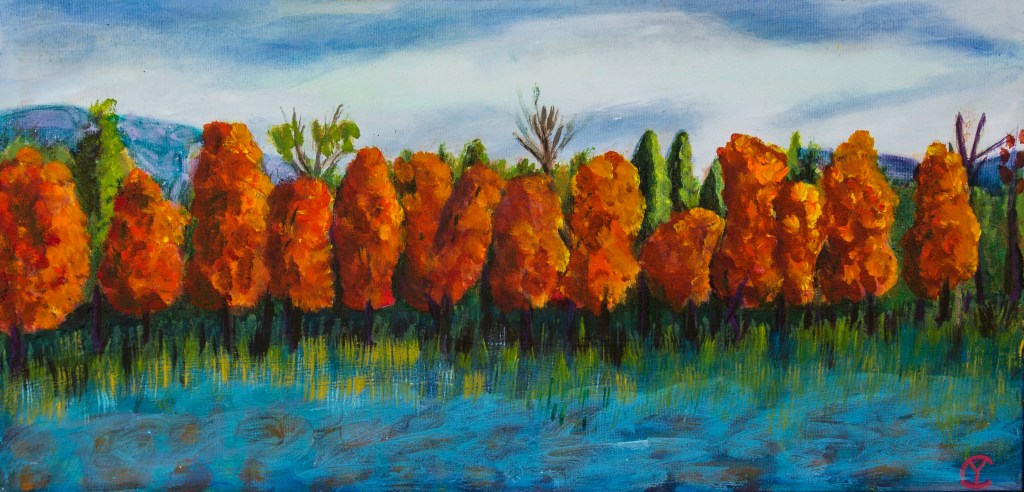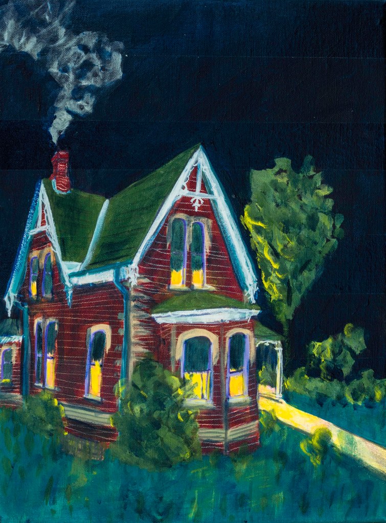 Traditionally, scapes refer to landscapes, depictions of the geographical world around the artist. Currently that view is expanded to include other views including tablescapes and mindscapes. [All works acrylic on canvas unless otherwise noted.]