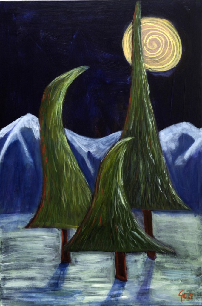 I’m generally an “editor”: putting down paint, observing, changing, wiping out &/or adding on. Paintings can take weeks, months — even years to finish! But last fall I challenged myself to do a work Alla prima. That’s an Italian term for a painting with one layer of pigment instead of multiple, finished in one sitting. At once!