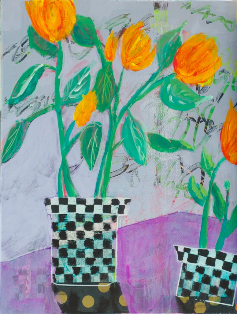 I’ll be leading a five-week exploration of creativity in April. You can bet we’ll be pushing colour around. Also shapes, contrasts, composition. Prepping for the class has got my mojo humming, with three or four canvases on the go – whoo hoo!