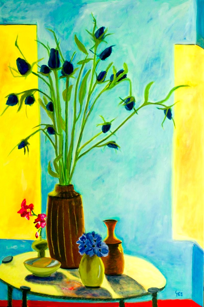 Yet there is a fascination in observing the “still” world through another’s eyes. [All works acrylic on canvas unless otherwise noted.]